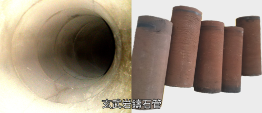| 採用玄武岩為主要原料,具有極好的耐磨損、抗腐蝕性能、抗壓強度高、耐磨性好。幾乎對所有的無機酸、有機酸、鹼類、鹽類、水及有機溶劑等都有良好的抗蝕能力。 |