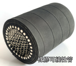 | 可繞性高、伸縮性優、柔韌性好;內部以橡膠包覆陶瓷模式形成耐磨功用。 |
